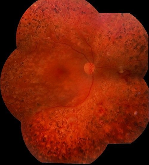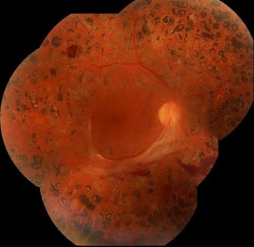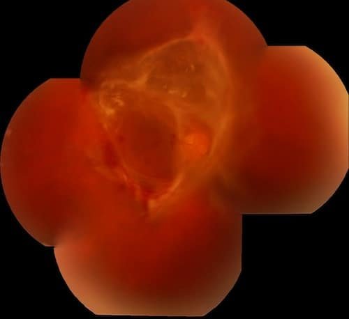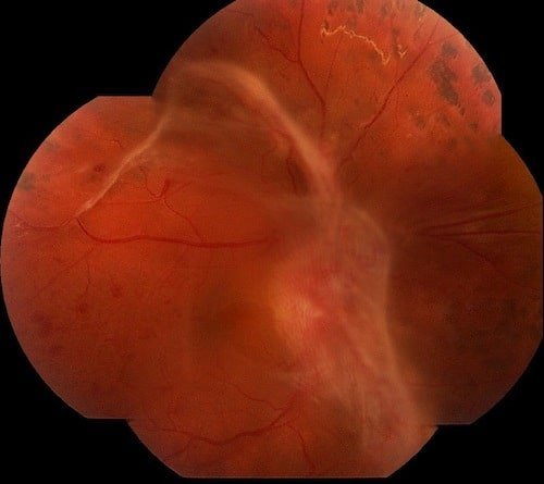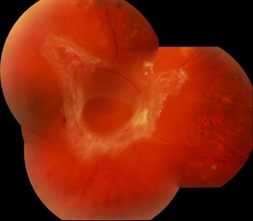 Fondo de ojo dos años más tarde luego de vitrectomia y endolaser.