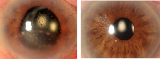 Precipitados queráticos localizados.