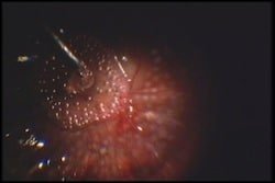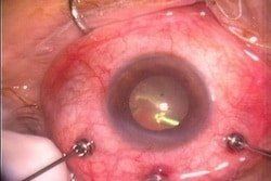 Figura 2. Vitrectomía transconjuntival a través de trocares 23G, cirugía que se realiza sin suturas.