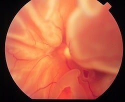 El diagnóstico se realiza examinando el fondo de ojo con oftalmoscopio binocular